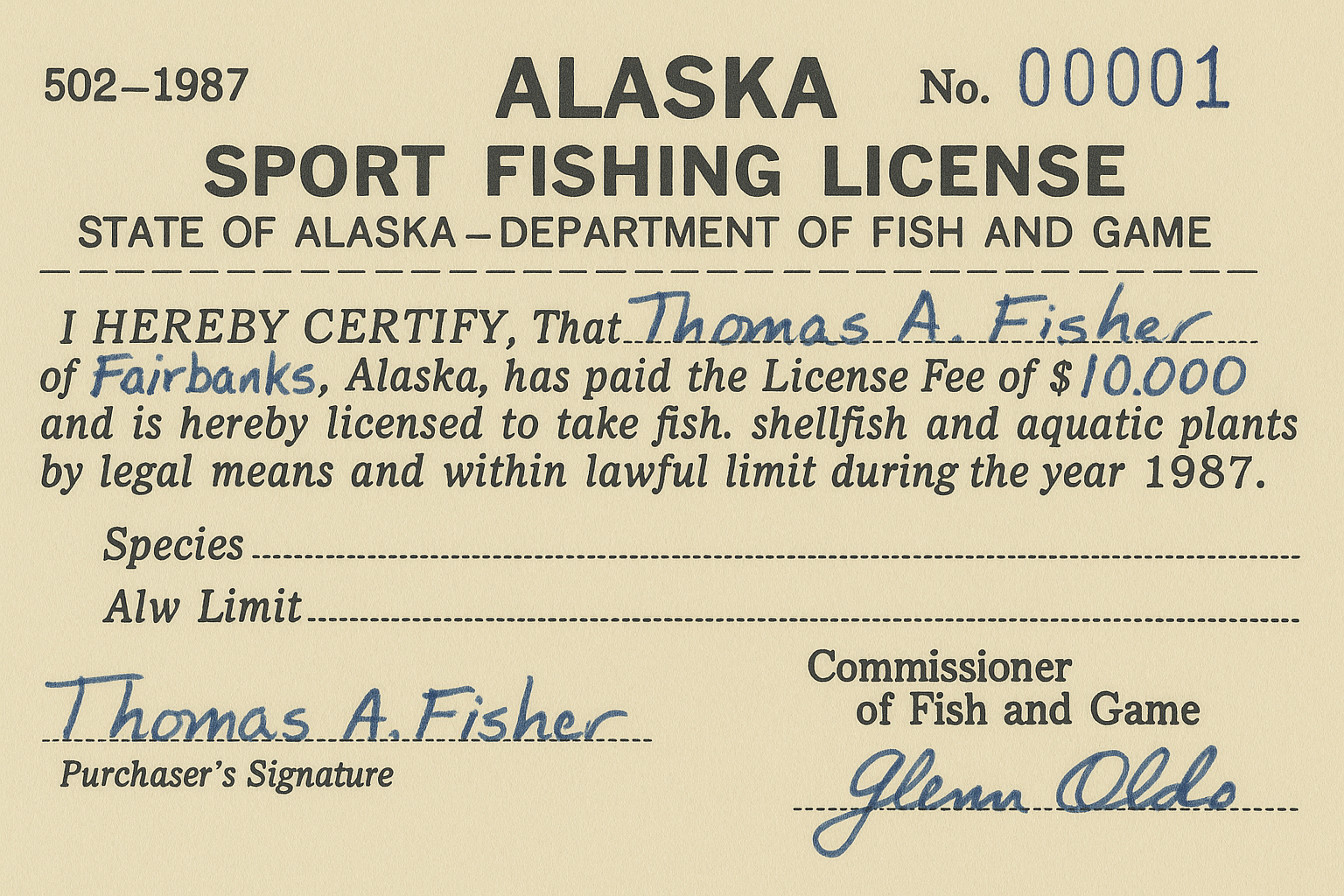Military Annual License: $20 (for active-duty stationed in Alaska)